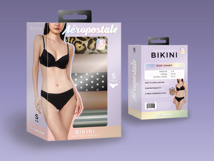 I edited the raw photo of the woman; removing blemishes, and unnatural shadows, also setting the white balance before creating a French Affair hangtag, which I gave a new design style. Then I created an innovative packaging style with the Aeropostale brand, making the photo provided as the eye-catching visual to draw the target audience and styling the packaging to be soft and feminine, using holographic foil to make important elements stand out.